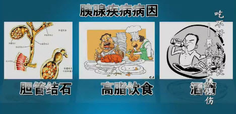 胰腺疾病的病因分为三种:胆管结石、高脂饮食和酒精。