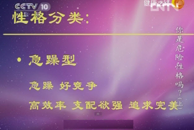 急躁型性格:急躁,好竞争,高效率,支配欲强,追求完美;