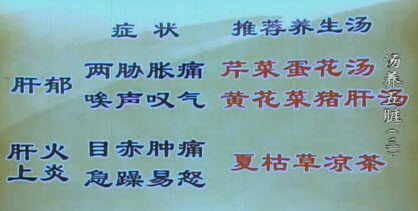 肝郁的典型症状是两肋胀痛,唉声叹气,推荐用芹菜蛋花汤、黄花菜猪肝汤调理。