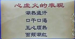 心虚火的表现:潮热盗汗、口干口渴、五心烦热、面颊潮红。