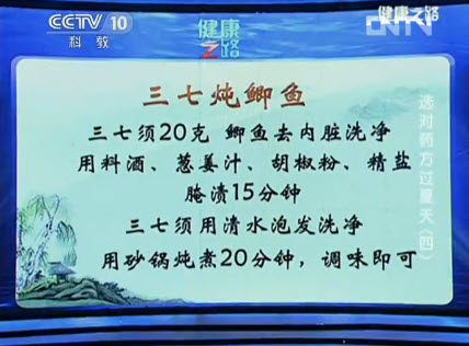 专家推荐药膳三七炖鲫鱼:三七须+鲫鱼
