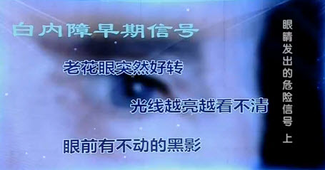专家观点:眼前有不懂黑影要警惕白内障。越亮越看不清楚也要警惕白内障。老花眼突然好转也要警惕白内障。