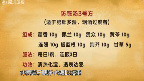 防感汤3号方:适于肥胖多湿、烟酒过度者。