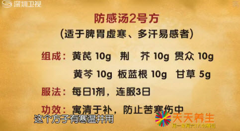 防感汤2号方:适于脾胃虚寒、多汗易感者。