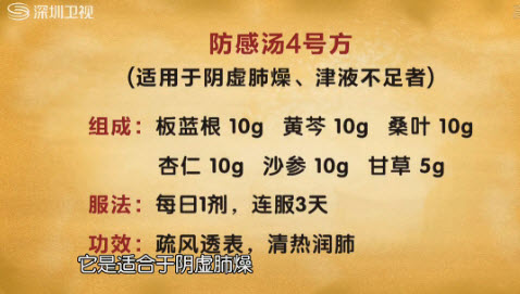 防感汤4号方:适于阴虚肺燥、津液不足者。
