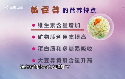 黄豆芽的营养特点:维生素含量增加、矿物质利用率高、蛋白质和多糖易吸收、大豆异黄酮含量升高。
