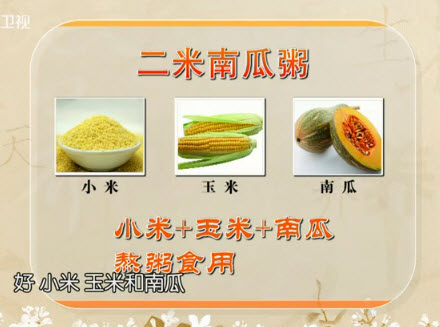 养脾胃食疗:二米南瓜粥、山珍五味粥(适宜早餐或中午食用)