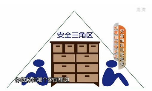 地震时可躲在有房梁、房柱角落等形成力学三角的区域。
