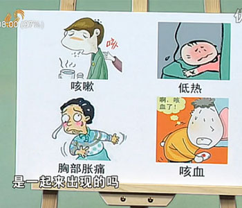 1、咳嗽 2、咳血 3、发热 4、胸痛 5、气急或胸腔有积液。
