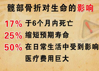 有人说髋部的骨折是人生中“最后一次骨折”,专家介绍,髋部的骨折严重影响健康,因为髋部骨折后需要卧床休养,长期卧床会导致血液循环系统紊乱,使血栓风险增高。