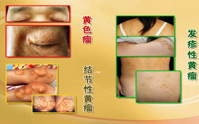 如果是出现在关节部位这种大的黄瘤,叫做结节性黄瘤,血里面胆固醇可能会较高;如果是肩背、臀部等出现很多黄豆大小的黄色瘤,叫做发疹性黄瘤,血里面的甘油三酯可能会非常高。