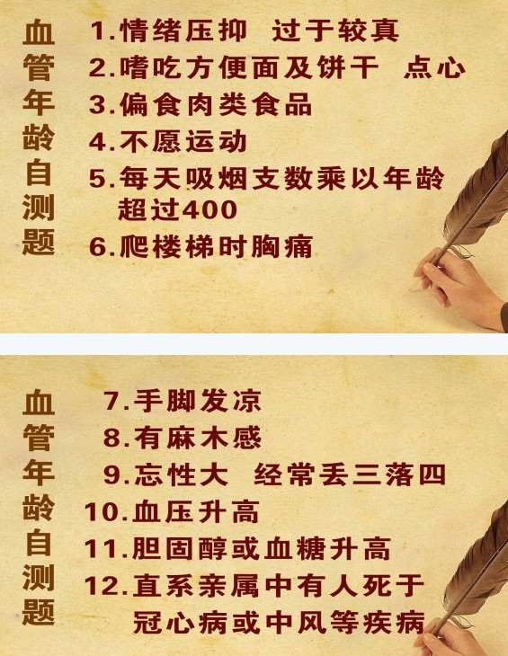 专家提示:我们的血管从10岁开始,管壁就会慢慢增厚,但是有的人进展快,有的人慢,不同的人,血管老化的速度是不一样的。如果你是一个血管容易老化的高危人群,斑点和斑条在20多岁就会开始形成,30或40岁的时候开始形成斑块。