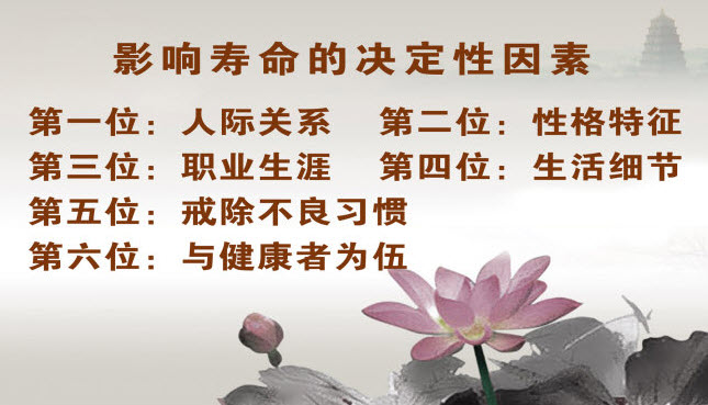 最近,美国心理学教授霍华德·弗里德曼和莱斯利·马丁经过二十年的研究,从研究对象多如牛毛的生活习惯中,总结出一些影响寿命的决定性因素,并发表新著《长寿工程》。该书列出了“长寿关键要素排行榜”。