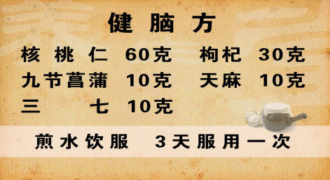 核桃仁和枸杞是补肝肾的,精血足了就可以健脑补脑;九节菖蒲开通心窍,宣窍涤痰,可以改善神志的情况;天麻平肝熄风;三七有通血管的作用。