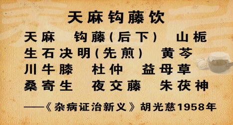 中医有一个平肝熄风的常用方—天麻钩藤饮;专家也给出了一个适合平时食疗用的小药膳。